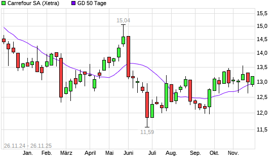 Mit dem Anstieg auf 12,93 EUR hat die Carrefour-Aktie am 25.11.2025 die 50-Tage-Linie nach oben gekreuzt.