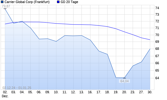 Mit dem Anstieg auf 68,00 EUR hat die Carrier Global-Aktie am 31.12.2024 die 20-Tage-Linie nach oben gekreuzt.