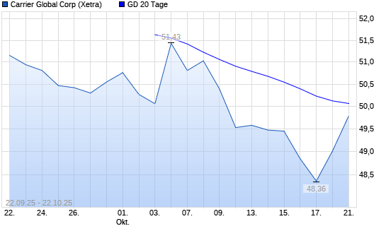 Mit dem Anstieg auf 51,03 EUR hat die Carrier Global-Aktie am 21.10.2025 die 20-Tage-Linie nach oben gekreuzt.