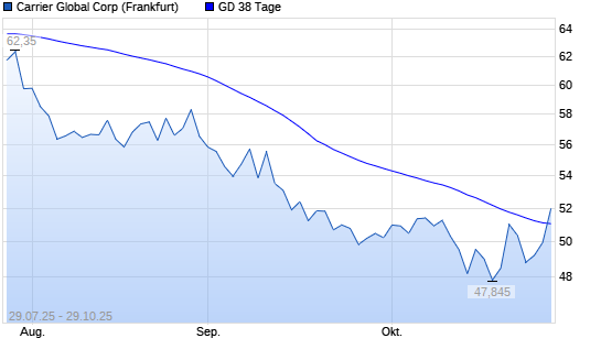 Mit dem Anstieg auf 52,00 EUR hat die Carrier Global-Aktie am 28.10.2025 die 38-Tage-Linie nach oben gekreuzt.