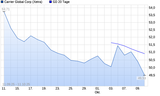 Mit dem Rücksetzer auf 50,32 EUR hat die Carrier Global-Aktie am 10.10.2025 die 20-Tage-Linie nach unten gekreuzt.