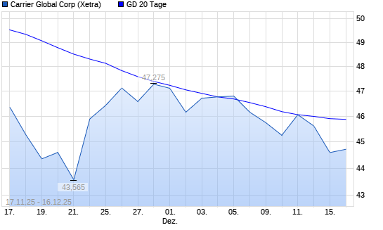 Mit dem Rücksetzer auf 44,51 EUR hat die Carrier Global-Aktie am 15.12.2025 die 20-Tage-Linie nach unten gekreuzt.