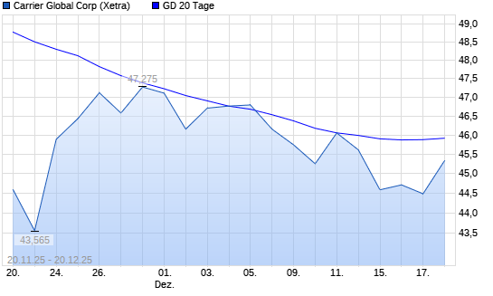 Mit dem Rücksetzer auf 45,26 EUR hat die Carrier Global-Aktie am 19.12.2025 die 20-Tage-Linie nach unten gekreuzt.