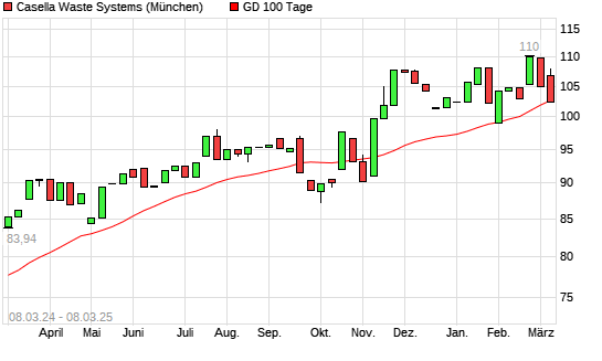 Mit dem Anstieg auf 102,75 EUR hat die Casella Waste Systems-Aktie am 07.03.2025 die 100-Tage-Linie nach oben gekreuzt.