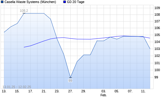 Mit dem Rücksetzer auf 103,40 EUR hat die Casella Waste Systems-Aktie am 11.02.2025 die 20-Tage-Linie nach unten gekreuzt.