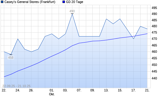 Mit dem Anstieg auf 480,00 EUR hat die Caseys General Stores-Aktie am 20.10.2025 die 20-Tage-Linie nach oben gekreuzt.