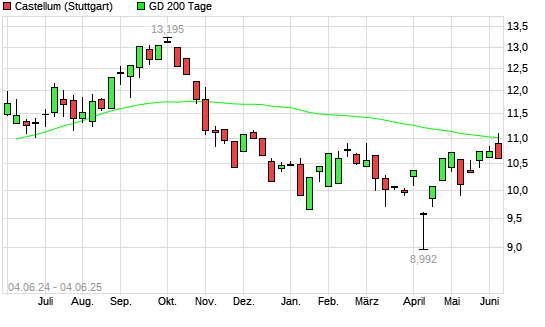 Mit dem Anstieg auf 10,90 EUR hat die Castellum-Aktie am 03.06.2025 die 200-Tage-Linie nach oben gekreuzt.