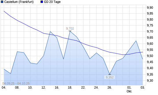 Mit dem Rücksetzer auf 9,47 EUR hat die Castellum-Aktie am 03.10.2025 die 20-Tage-Linie nach unten gekreuzt.