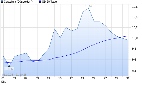 Mit dem Rücksetzer auf 9,95 EUR hat die Castellum-Aktie am 30.10.2025 die 20-Tage-Linie nach unten gekreuzt.