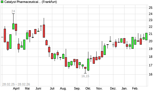 Mit dem Anstieg auf 21,11 EUR hat die Catalyst Pharm Partners-Aktie (ISIN US14888U1016) am 27.02.2026 ein neues 6-Monats-Hoch erreicht und damit den Kurs vom 04.02.2026 eingestellt.