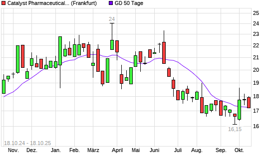 Mit dem Rücksetzer auf 17,21 EUR hat die Catalyst Pharm Partners-Aktie am 17.10.2025 die 50-Tage-Linie nach unten gekreuzt.