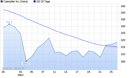 Mit dem Anstieg auf 318,00 EUR hat die Caterpillar-Aktie am 25.03.2025 die 20-Tage-Linie nach oben gekreuzt.