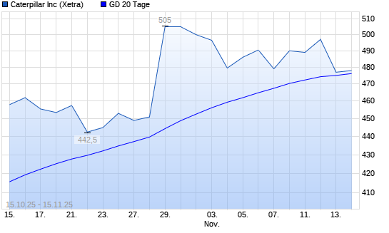 Mit dem Anstieg auf 480,50 EUR hat die Caterpillar-Aktie am 14.11.2025 die 20-Tage-Linie nach oben gekreuzt.