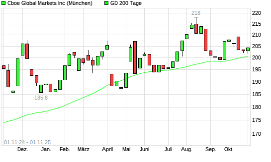 Mit dem Anstieg auf 204,40 EUR hat die Cboe Global Markets-Aktie am 31.10.2025 die 200-Tage-Linie nach oben gekreuzt.