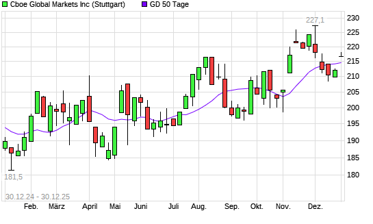 Mit dem Anstieg auf 216,40 EUR hat die Cboe Global Markets-Aktie am 29.12.2025 die 50-Tage-Linie nach oben gekreuzt.