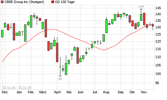 Mit dem Anstieg auf 133,00 EUR hat die Cbre Group-Aktie am 20.11.2025 die 100-Tage-Linie nach oben gekreuzt.