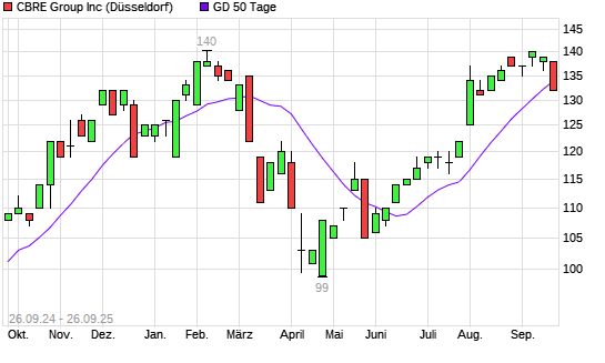 Mit dem Rücksetzer auf 133,00 EUR hat die Cbre Group-Aktie am 25.09.2025 die 50-Tage-Linie nach unten gekreuzt.