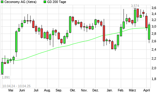 Mit dem Anstieg auf 3,05 EUR hat die Ceconomy St-Aktie am 09.04.2025 die 200-Tage-Linie nach oben gekreuzt.