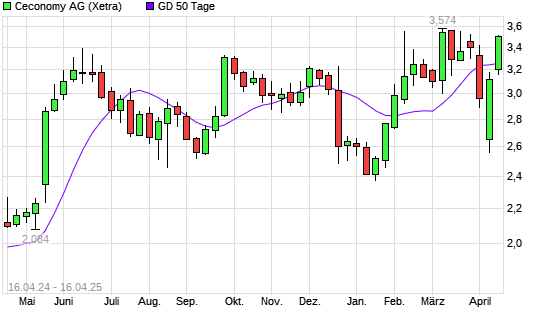 Mit dem Anstieg auf 3,35 EUR hat die Ceconomy St-Aktie am 15.04.2025 die 50-Tage-Linie nach oben gekreuzt.