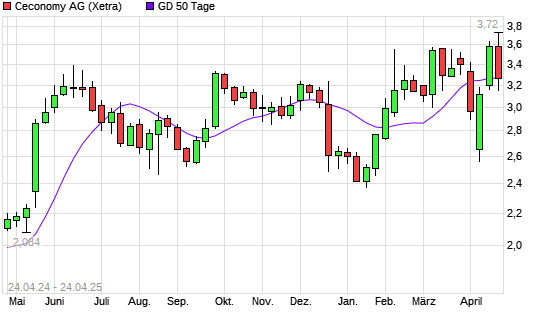 Mit dem Anstieg auf 3,28 EUR hat die Ceconomy St-Aktie am 23.04.2025 die 50-Tage-Linie nach oben gekreuzt.