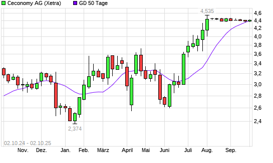 Mit dem Anstieg auf 4,40 EUR hat die Ceconomy St-Aktie am 01.10.2025 die 50-Tage-Linie nach oben gekreuzt.