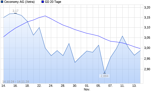 Mit dem Rücksetzer auf 2,98 EUR hat die Ceconomy St-Aktie am 13.11.2024 die 20-Tage-Linie nach unten gekreuzt.