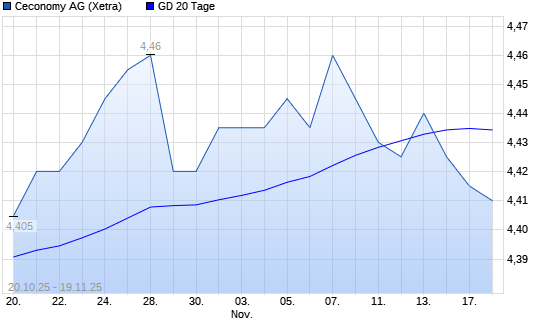 Mit dem Rücksetzer auf 4,41 EUR hat die Ceconomy St-Aktie am 18.11.2025 die 20-Tage-Linie nach unten gekreuzt.
