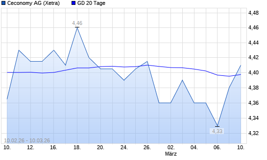 Mit dem Rücksetzer auf 4,25 EUR hat die Ceconomy St-Aktie am 09.03.2026 die 20-Tage-Linie nach unten gekreuzt.