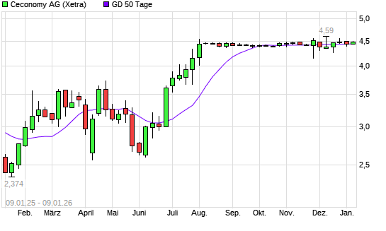 Mit dem Rücksetzer auf 4,41 EUR hat die Ceconomy St-Aktie am 08.01.2026 die 50-Tage-Linie nach unten gekreuzt.