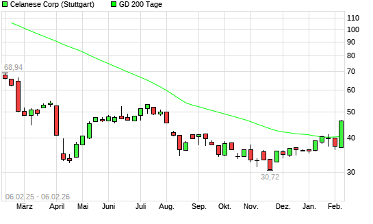 Mit dem Anstieg auf 45,71 EUR hat die Celanese-Aktie am 05.02.2026 die 200-Tage-Linie nach oben gekreuzt.
