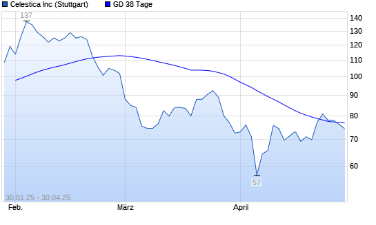 Mit dem Rücksetzer auf 75,80 EUR hat die Celestica-Aktie am 29.04.2025 die 38-Tage-Linie nach unten gekreuzt.