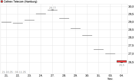 Mit dem Rücksetzer auf 27,02 EUR hat die Cellnex Telecom SA-Aktie (ISIN ES0105066007) am 03.11.2025 ein neues 12-Monats-Tief erreicht und damit den Kurs vom 31.10.2025 eingestellt.