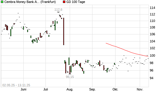 Mit dem Anstieg auf 100,10 EUR hat die Cembra Money Bank AG-Aktie am 12.11.2025 die 100-Tage-Linie nach oben gekreuzt.