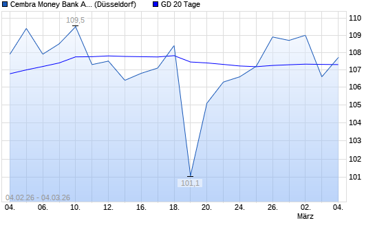 Mit dem Anstieg auf 108,10 EUR hat die Cembra Money Bank AG-Aktie am 03.03.2026 die 20-Tage-Linie nach oben gekreuzt.Die Cembra Money Bank AG-Aktie befindet sich seit dem 20.02.2026 ...weiterlesen