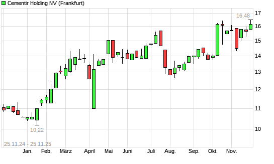 Mit dem Anstieg auf 16,36 EUR hat die Cementir Holding-Aktie (ISIN NL0013995087) am 24.11.2025 ein neues All-Time-High erreicht und damit den Kurs vom 27.10.2025 eingestellt.