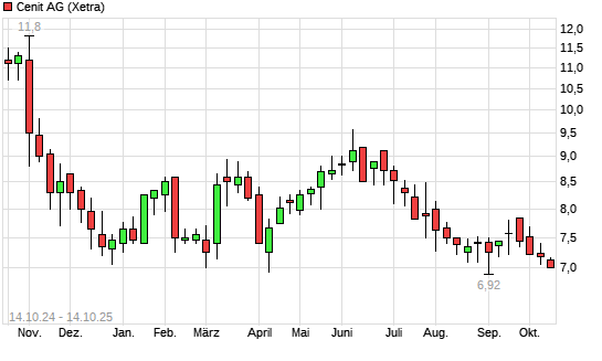 Mit dem Rücksetzer auf 7,02 EUR hat die Cenit-Aktie (ISIN DE0005407100) am 13.10.2025 ein neues 10-Jahres-Tief erreicht und damit den Kurs vom 07.04.2025 eingestellt.