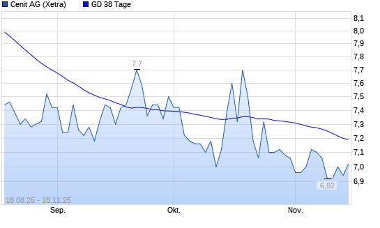 Mit dem Rücksetzer auf 6,90 EUR hat die Cenit-Aktie am 17.11.2025 die 38-Tage-Linie nach unten gekreuzt.