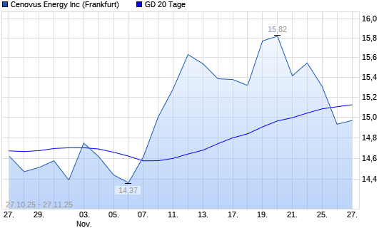 Mit dem Rücksetzer auf 14,93 EUR hat die Cenovus Energy-Aktie am 26.11.2025 die 20-Tage-Linie nach unten gekreuzt.