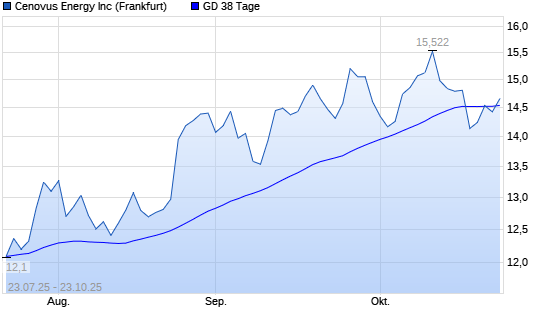 Mit dem Rücksetzer auf 14,42 EUR hat die Cenovus Energy-Aktie am 22.10.2025 die 38-Tage-Linie nach unten gekreuzt.