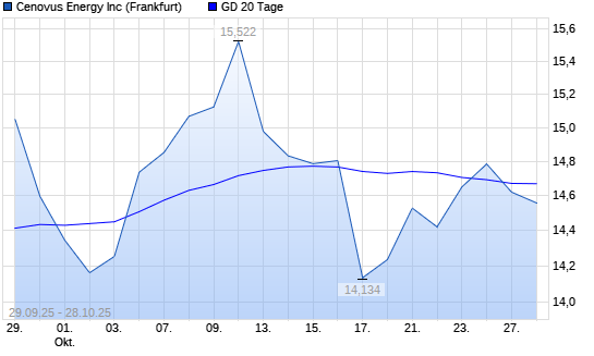 Mit dem Rücksetzer auf 14,62 EUR hat die Cenovus Energy-Aktie am 27.10.2025 die 20-Tage-Linie nach unten gekreuzt.Die Cenovus Energy-Aktie befindet sich seit dem 22.08.2025 im langfristigen ...weiterlesen