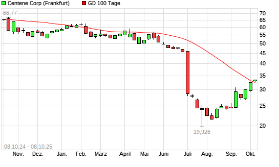 Mit dem Anstieg auf 32,79 EUR hat die Centene-Aktie am 07.10.2025 die 100-Tage-Linie nach oben gekreuzt.