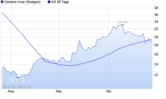 Mit dem Rücksetzer auf 29,38 EUR hat die Centene-Aktie am 27.10.2025 die 38-Tage-Linie nach unten gekreuzt.