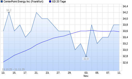 Mit dem Anstieg auf 33,80 EUR hat die CenterPoint Energy-Aktie am 10.11.2025 die 20-Tage-Linie nach oben gekreuzt.