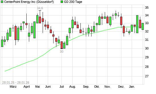 Mit dem Anstieg auf 32,80 EUR hat die CenterPoint Energy-Aktie am 27.01.2026 die 200-Tage-Linie nach oben gekreuzt.