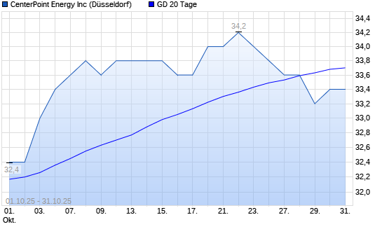 Mit dem Rücksetzer auf 33,00 EUR hat die CenterPoint Energy-Aktie am 30.10.2025 die 20-Tage-Linie nach unten gekreuzt.