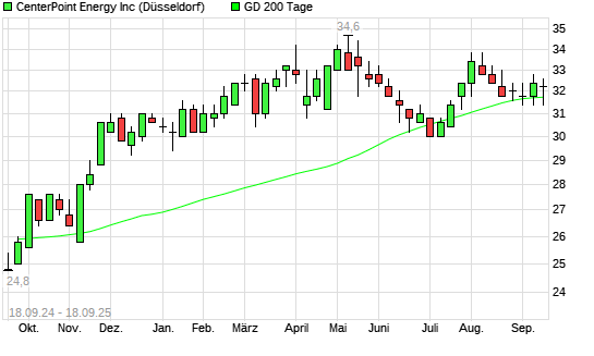 Mit dem Rücksetzer auf 31,40 EUR hat die CenterPoint Energy-Aktie am 17.09.2025 die 200-Tage-Linie nach unten gekreuzt.