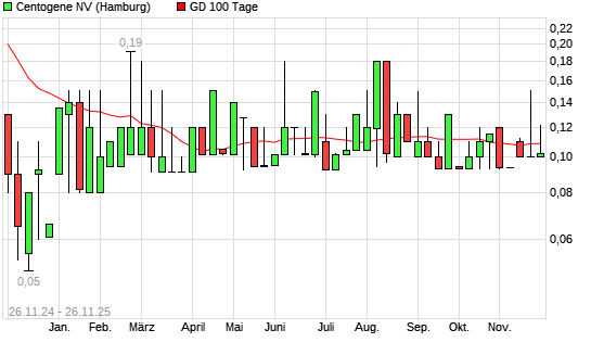 Mit dem Anstieg auf 0,11 EUR hat die Centogene-Aktie am 25.11.2025 die 100-Tage-Linie nach oben gekreuzt.