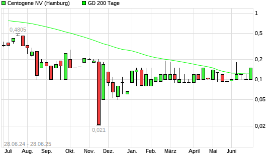 Mit dem Anstieg auf 0,15 EUR hat die Centogene-Aktie am 27.06.2025 die 200-Tage-Linie nach oben gekreuzt.