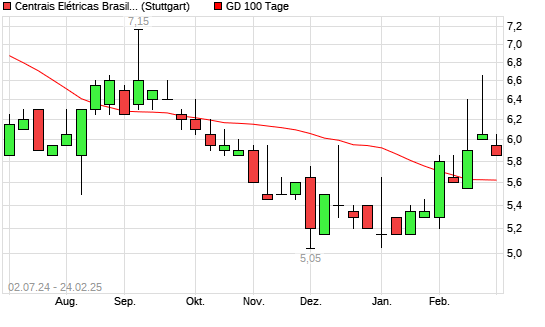 Die Centrais-Aktie befindet sich seit dem 17.02.2025 im langfristigen Aufwärtstrend und hat in diesem Zeitraum +1,83% an Wert gewonnen. Der Abstand zur 200-Tage-Linie beträgt aktuell +3,20%.