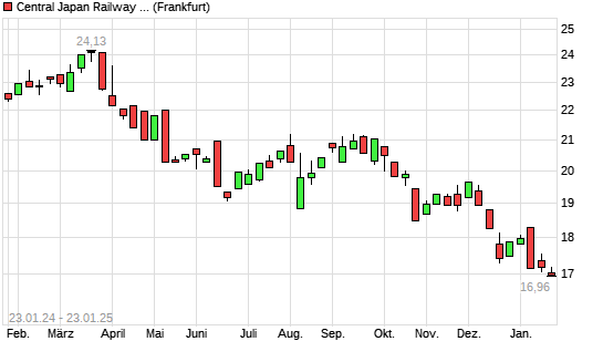 Mit dem Rücksetzer auf 17,02 EUR hat die Central Japan Railway-Aktie (ISIN JP3566800003) am 22.01.2025 ein neues 10-Jahres-Tief erreicht und damit den Kurs vom 16.01.2025 eingestellt.